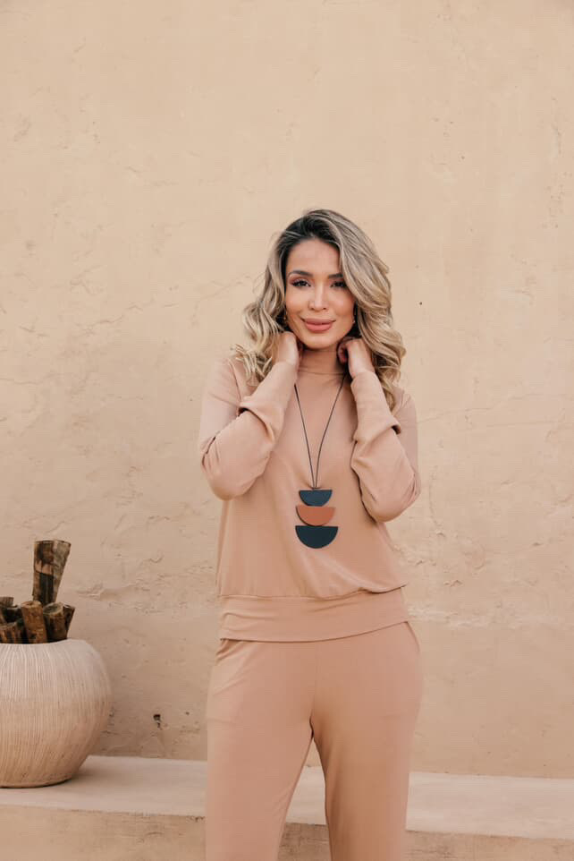 Feito em moletinho de viscose com gramatura 300, o Conjunto Emília tem toque macio, caimento perfeito e modelagem que valoriza o corpo com sofisticação.